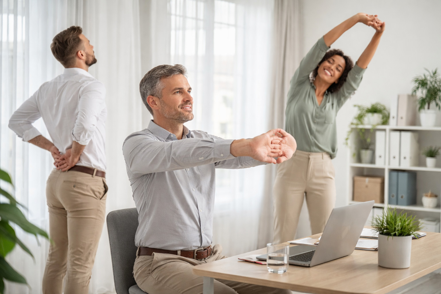 Gezielte Bewegungsangebote im Arbeitsalltag können Mitarbeitende dabei unterstützen,